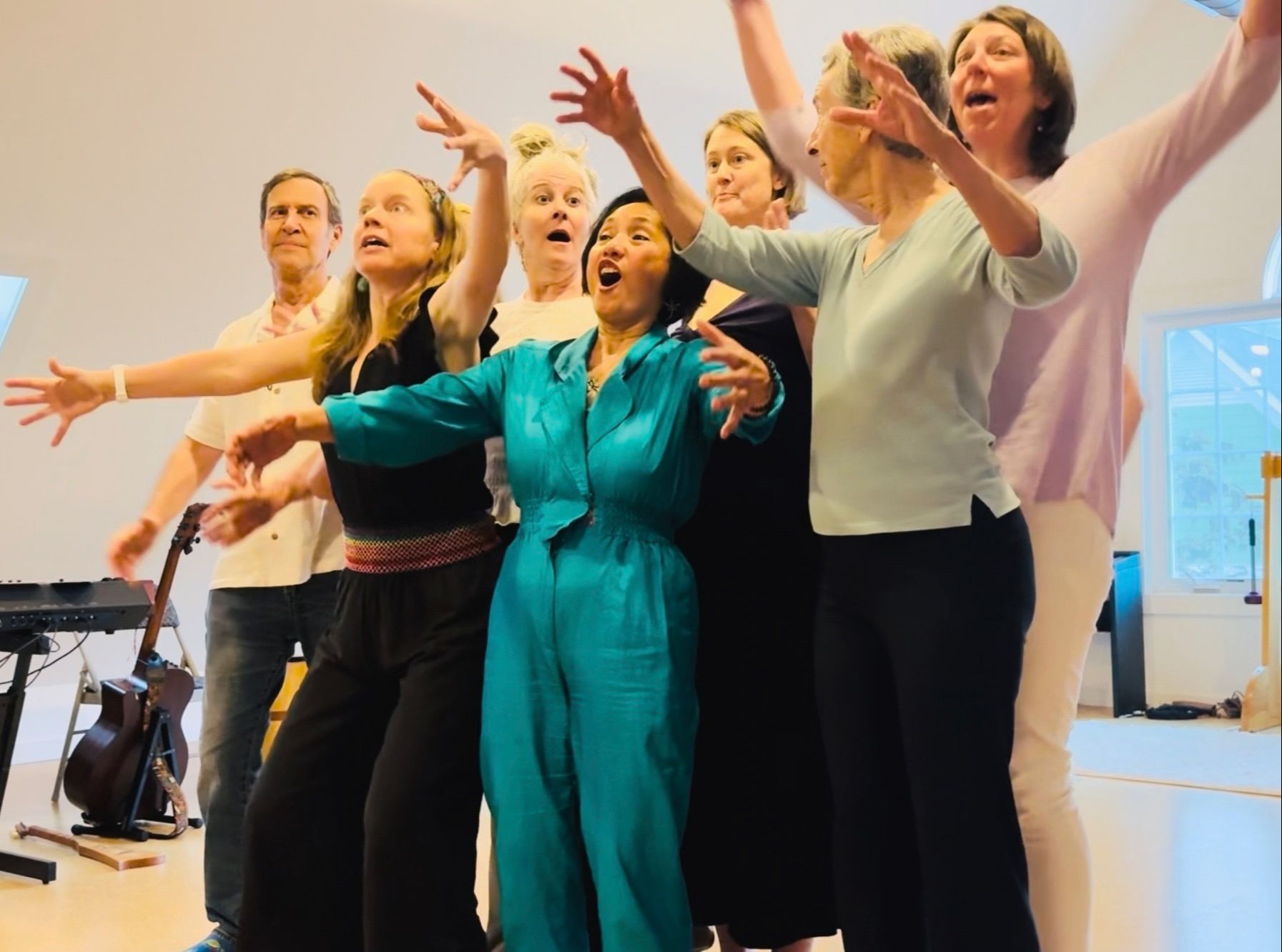 A Spirited Improv performance is unlike anything you’ve ever witnessed. More than entertainment, Spirited Improv is an enlivening emergent experience of collective creativity. It’s an improvisational showcase of the human spirit at play with invitations into music-making, dance, singing, acting, costumed silliness, story-telling, and ritual that deeply nourish the heart and soul. It offers a warm, playful, and safe container where laughter, tears, and connection flow freely.